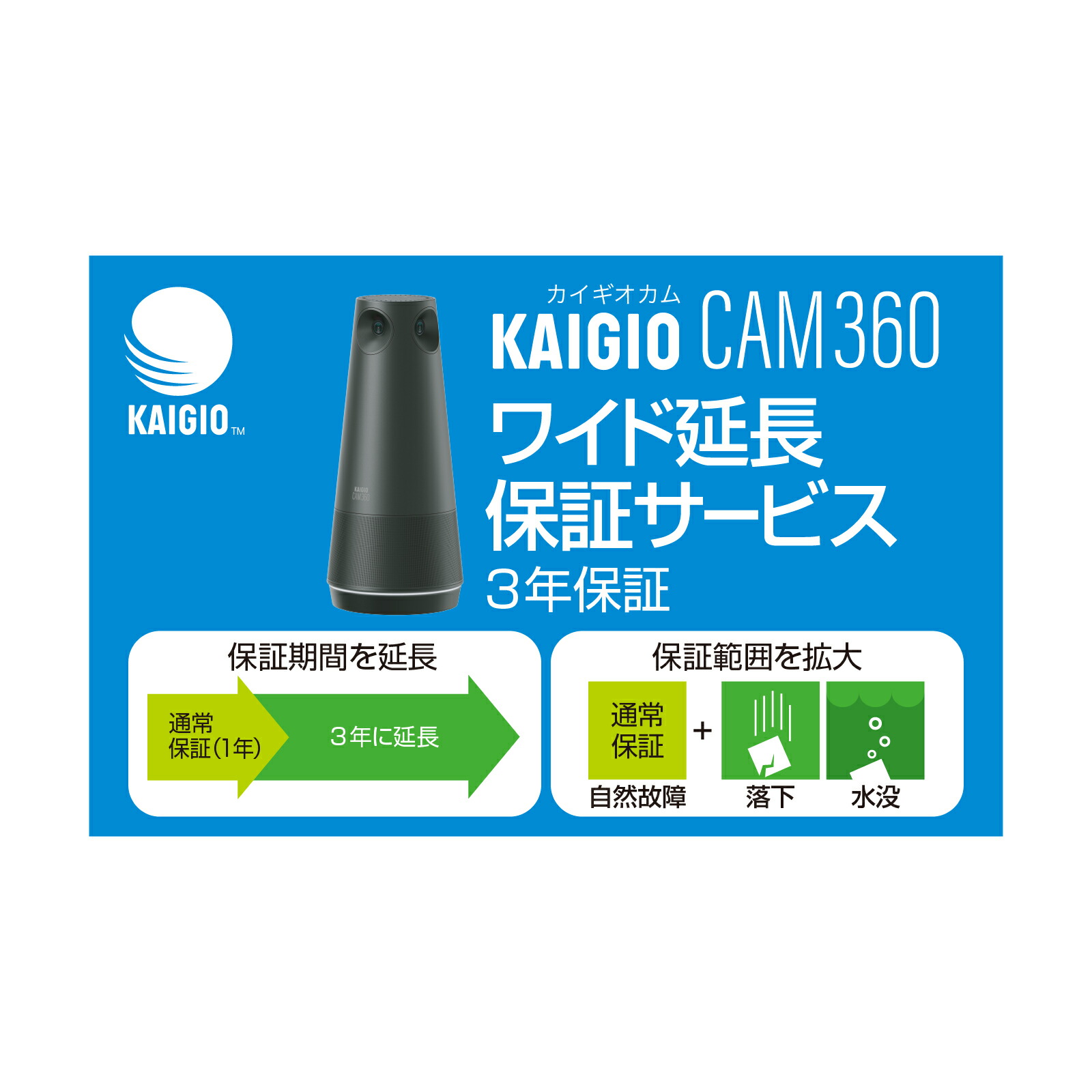 「KAIGIO CAM360」の標準保証(12ヶ月)を、ご購入日お買い上げ商品の発送日より3年間に延長するサービスです。本体購入と同時、もしくは購入から30日以内、お申し込み可能です。