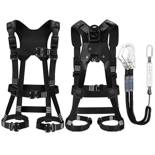 [UTOPKU] フルハーネス安全帯 新規格 セット 脱着簡単 腹部と胸と脚ワンタッチバックル 便利 安全 水平型腿ベルト 伸縮式 ダブルランヤード ハーネス