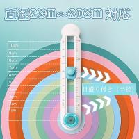 使いやすい:刃が鋭くて使いやすいです。スムーズに操作することができます、きれいな円を簡単に切ることができます。さらに、円切りカッターには読みやすい目盛りが付いており、必要なサイズを簡単に調整できますし、数字も読みやすいです。子供でも気軽に使えます。ハンドメイドレッスンでの使用に最適。(円切りカッターに付いた目盛りは半径です。ご注意ください。)使い方:?切りたい円の直径サイズにノブを合わせる。?保護キャップを取り外す。?青い円筒の部分を力強く押さえながら切ります。