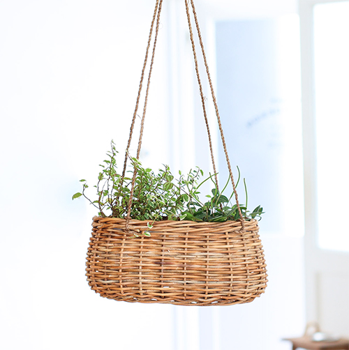 植物はもちろん、小物の収納などにも使い道が広がるつり下げかごです。