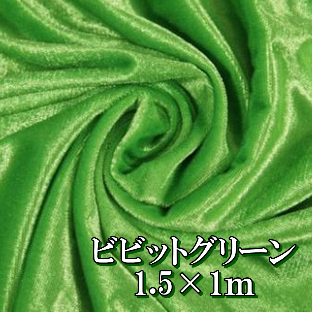 高光沢 映える ベロア 厚手 生地 カラー ビビットグリーン 緑色 約幅150cm×1m ベルベット 刺繍 裁縫 ハンドメイド 布地 DIY 背景 布 目隠し