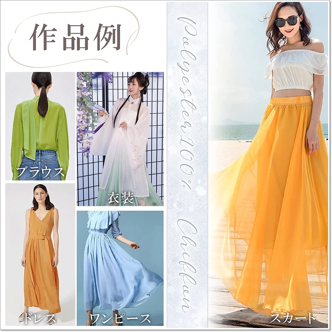 用途:手芸 撮影 背景布 目隠し DIY 衣類 服地 民芸品 人形衣装 インテリア 展示 ディスプレイ 等 作品例:ブラウス ドレス スカーフ ワンピース スカート ショール レースカーテン ランジェリー トップス 等