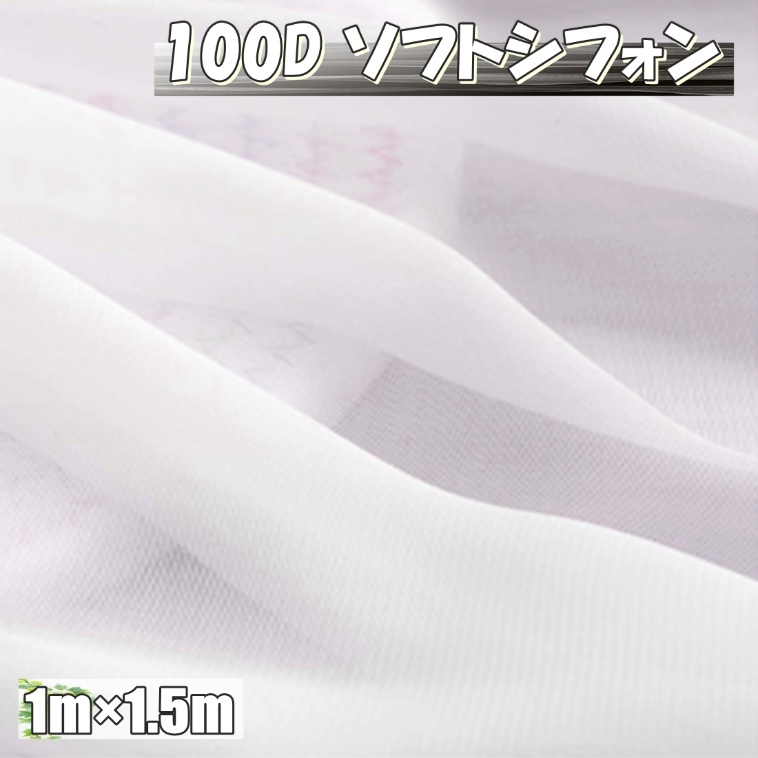 100D ソフト シフォン 生地 カラー ホワイト 1m×幅1.5m 無地 手芸 布 薄手