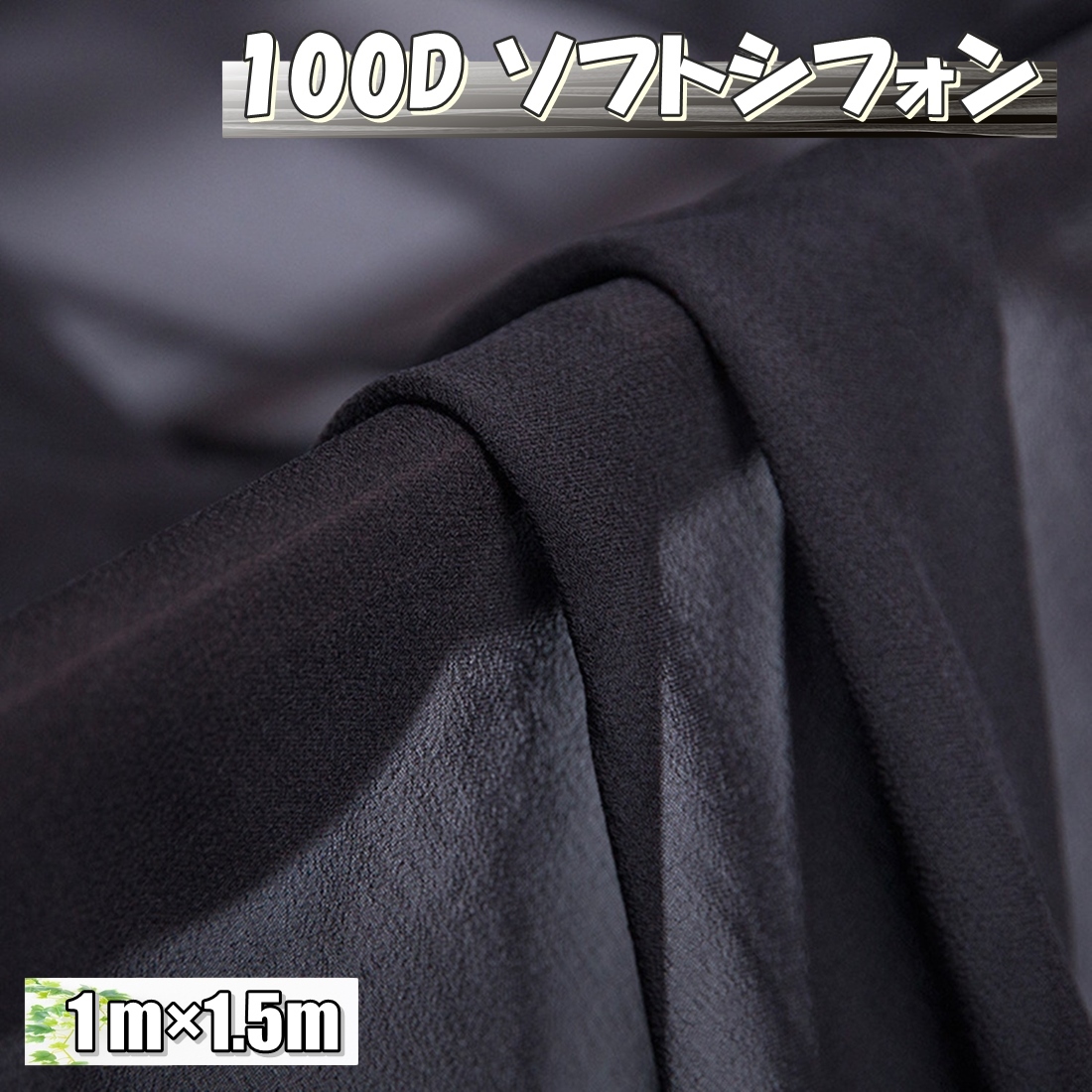 黒 100D ソフト シフォン 生地 1m×幅1.5m 無地 手芸 布 薄手