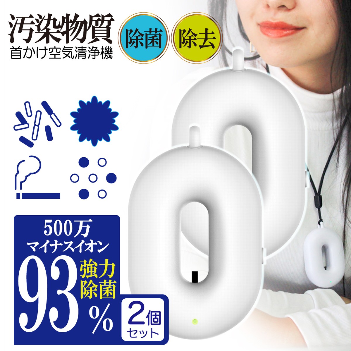 首掛け空気清浄機 2個セット 携帯用 空気清浄機 除菌 消臭 マイナスイオン 花粉 タバコ 煙 小型 コンパクト 充電式 ポータブル