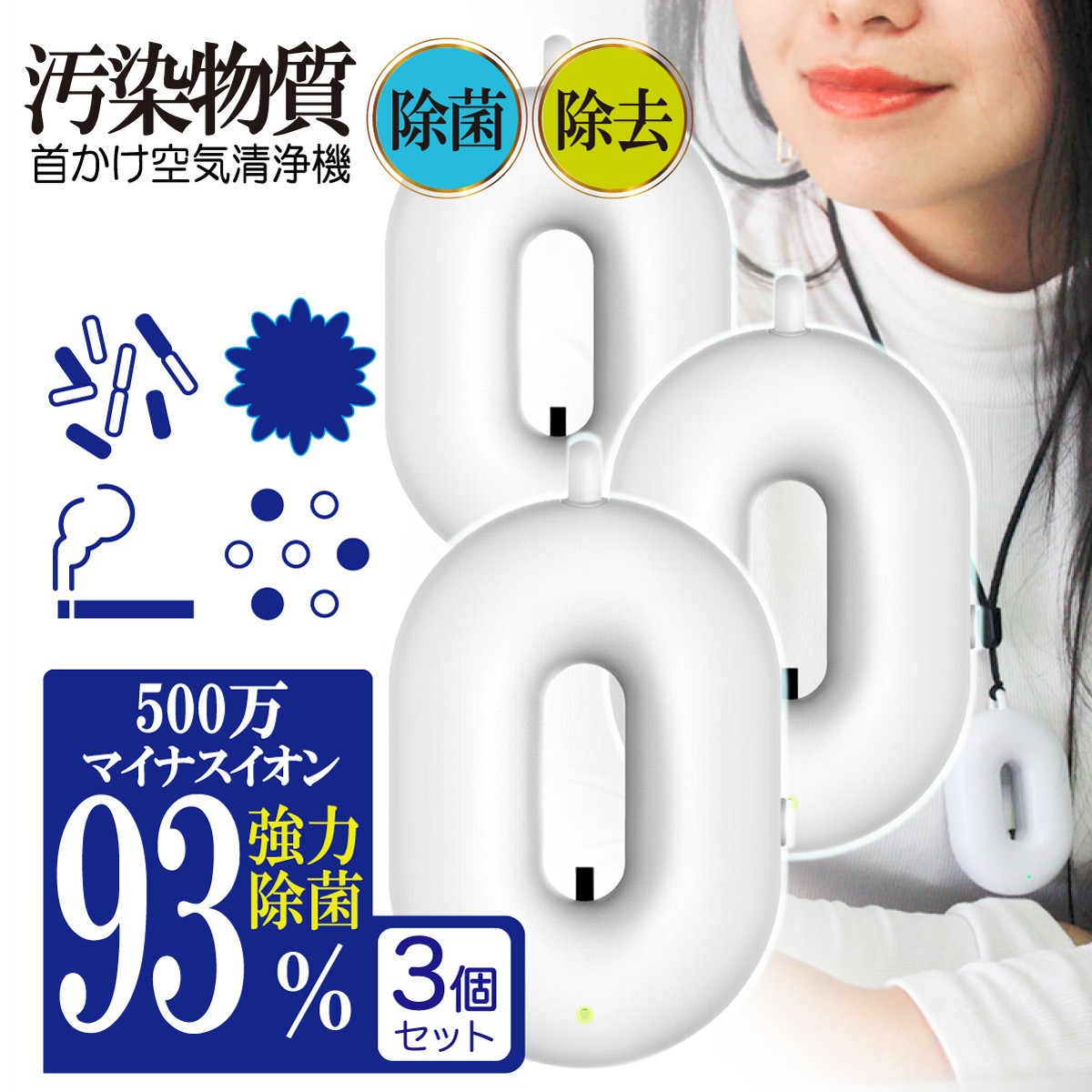 首掛け空気清浄機 3個セット 携帯用 空気清浄機 除菌 消臭 マイナスイオン 花粉 タバコ 煙 小型 コンパクト 充電式 ポータブル