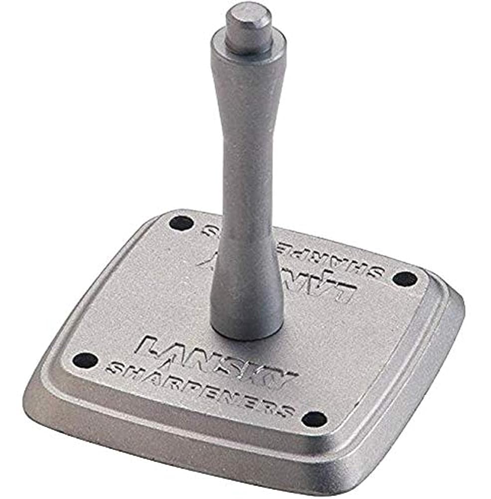 「商品情報」ランスキーシャープニングキットのナイフクランプを支柱に付けて研ぐ事ができます。固定用ネジ穴付ベースと支柱は分解できるのでキットのケースに収納することができます。「主な仕様」サイズ:8×8×高さ9cm