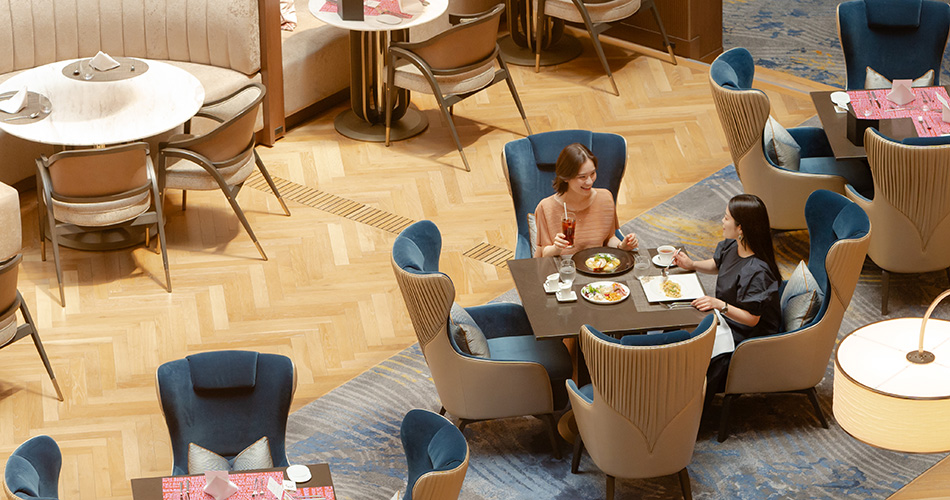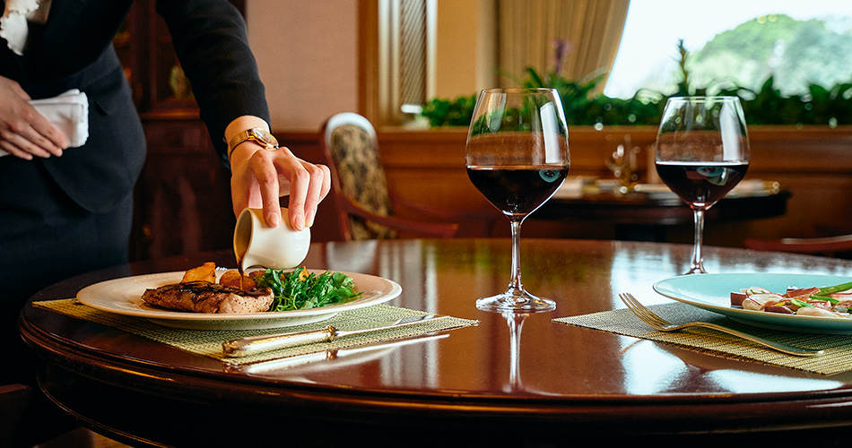 一皿ずつ美しく盛り付けられた料理の数々と、ウェイターのスマートなサービス。ホテルレストランのクオリティが特別感を演出する中で、落ち着いて会話や食事を楽しめます。イタリアン、中華、和食など料理ジャンルが豊富なのも魅力です。