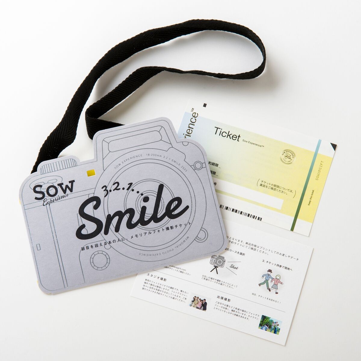 メモリアルフォト撮影チケットのために作られたカメラ型の専用ギフトボックスです。カメラの形をしたパッケージ。厚みがなくコンパクトなサイズなのでサプライズのプレゼントにも適しています。