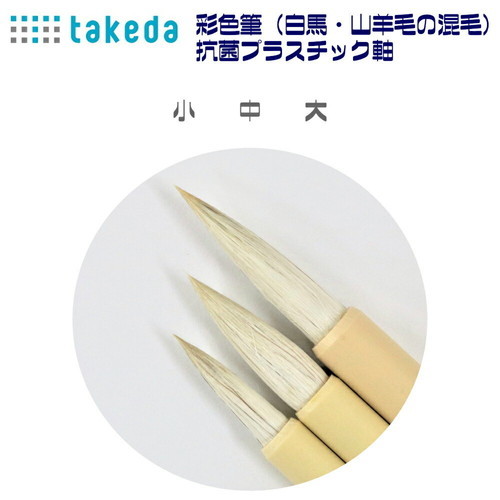 takeda 彩色筆 小 抗菌プラスチック軸 白馬・山羊毛の混毛 1本入り 日本製 全長19.8cm ( 馬毛 山羊 毛 ふで 筆 フデ 抗菌 プラスチック 70-5530