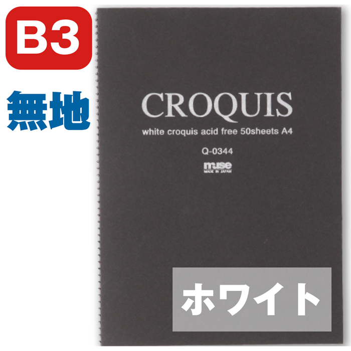 ホワイトクロッキーブック クロッキーブック ミューズ muse 黒 B3 Q-0353 黒表紙 本型・背付SP 50枚クロッキー用紙