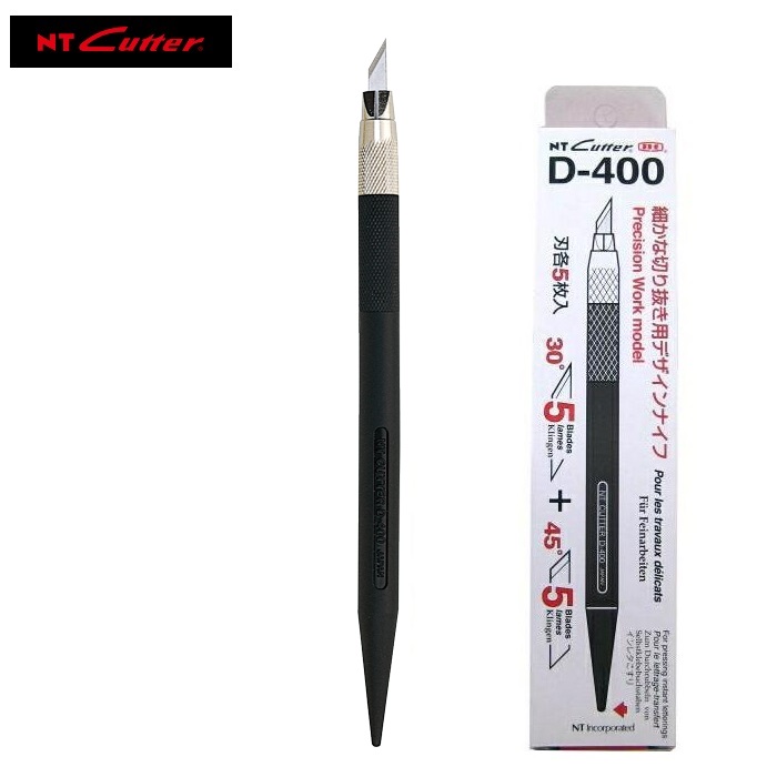 NTカッター NT デザインカッター D-400 切り絵 消しゴムはんこ 2種類の刃(刃先45°、30°)各5枚入 キャップ 替刃ケース付