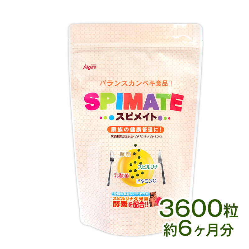 | 家族で飲めるこの一本!スピルリナにビタミンCと酵素、乳酸菌を配合した、バランス カンペキ 食品! ★スピメイトは、鉄・ビタミンB12・ビタミンCの栄養機能食品です。 |