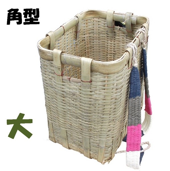 竹製 背負い籠(かご)、収穫かご 角型 大 巾約40cm×30cm×H45cm 【竹製かご カゴ 山菜採り きのこ採り】