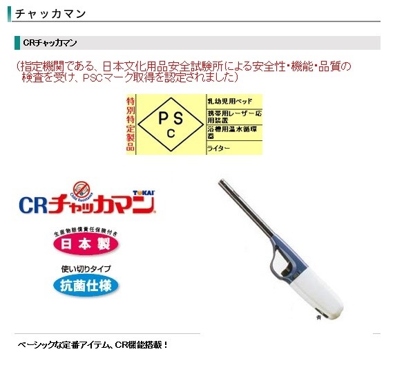 小さな子供などが着火できないCR機能つき。コンロへの着火に。ろうそくやお線香に。花火などへの着火に。