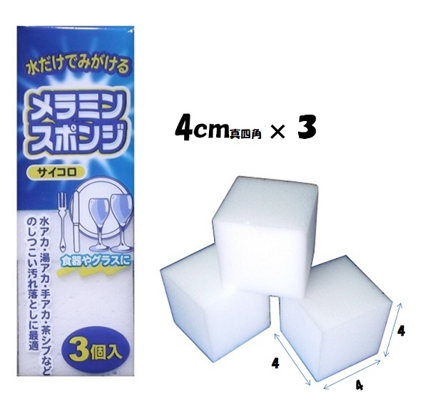 メラミンスポンジ サイコロ 3P (4cm立方角×3個)【メラミン カット スポンジ クリーナー】