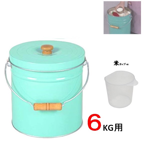 トタン 丸型 米びつ 6kg(約8L)つる付きタイプ ターコイズTMK−6T【金属製 ライスストッカー 米缶】※3月31日まで米計量カップサービスセール。