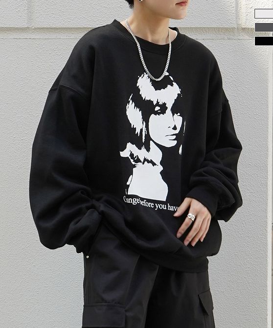 Confirm コンファーム ワンポイントロゴ フォトプリント Shadowガールプリント ビッグシルエット 裏起毛プルオーバースウェット ユニセックス
