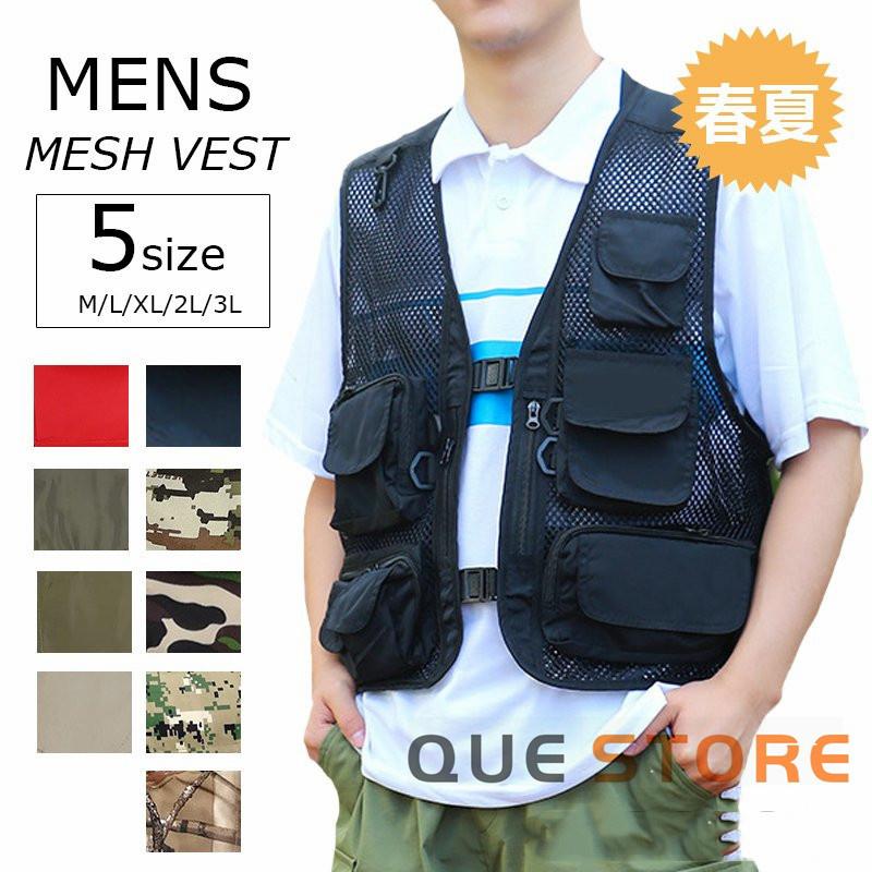 【値下げ】メンズ ベストフィッシングベスト 夏 メッシュベスト 多ポケット 多機能 ベスト 便利 収納 ポケット 機能性 釣り 渓流 登山 アウトドア キャンプ
