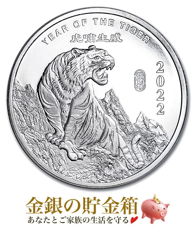 干支トラ 純銀 コイン 1/2オンス 2022年製 クリアケース入り 銀貨 金銀の貯金箱