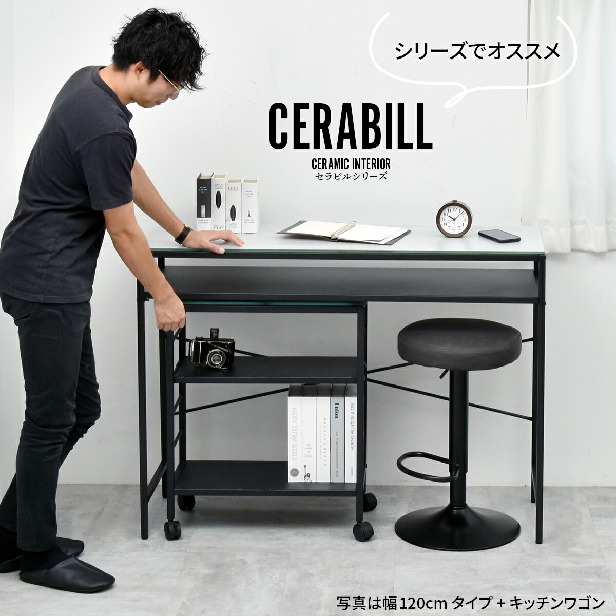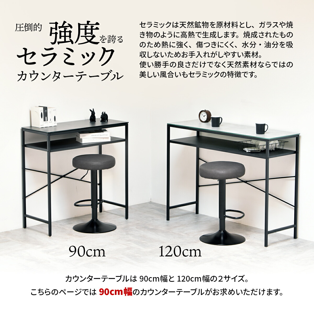 カウンターテーブル 高さ90cm 幅90cm cetb0274 天板セラミック 耐熱 棚板 収納 カウンター ダイニング テーブル 北欧 おしゃれ