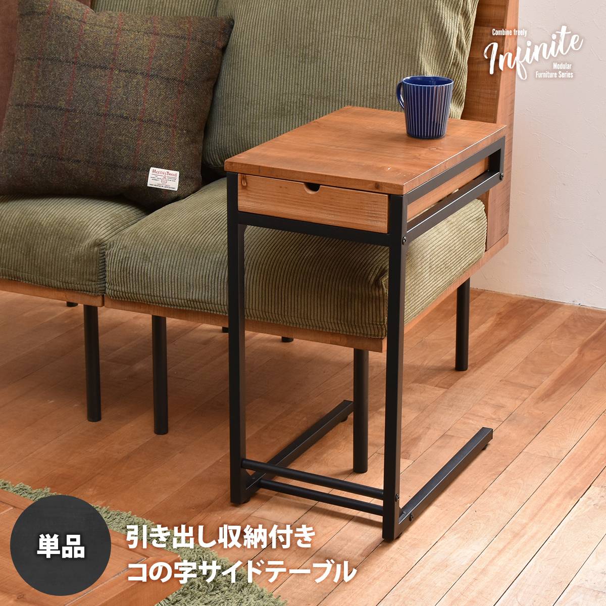 サイドテーブル ソファーサイド infinite コーヒーテーブル コの字 引出し 収納 リビング ダイニング 天然木 ヴィンテージ 古材風 天然木 ラバーウッド I
