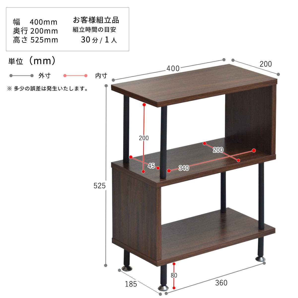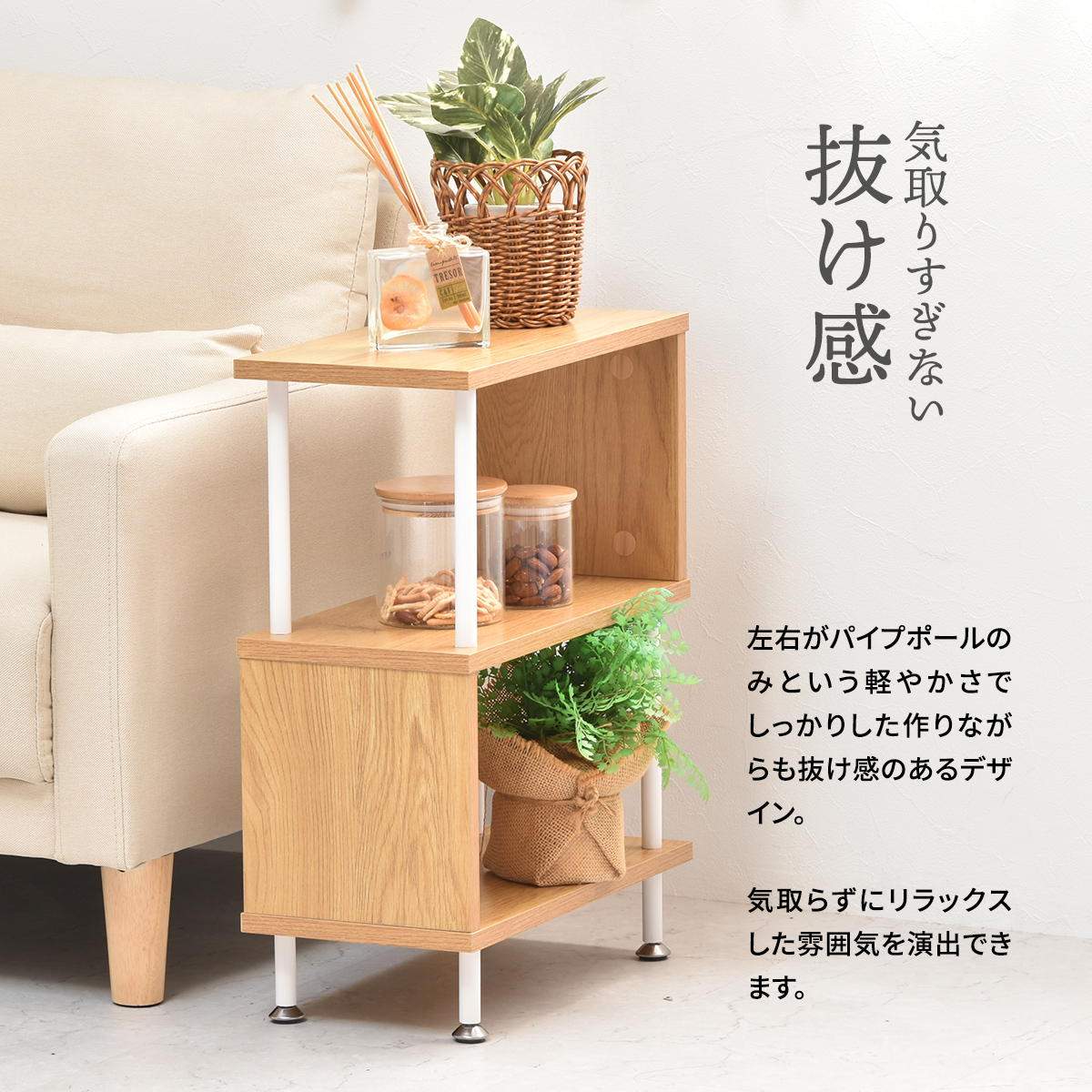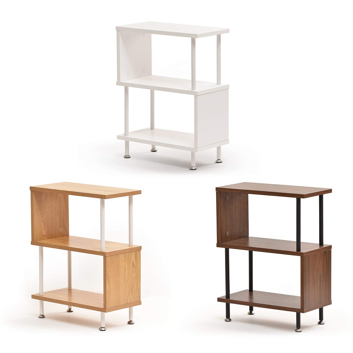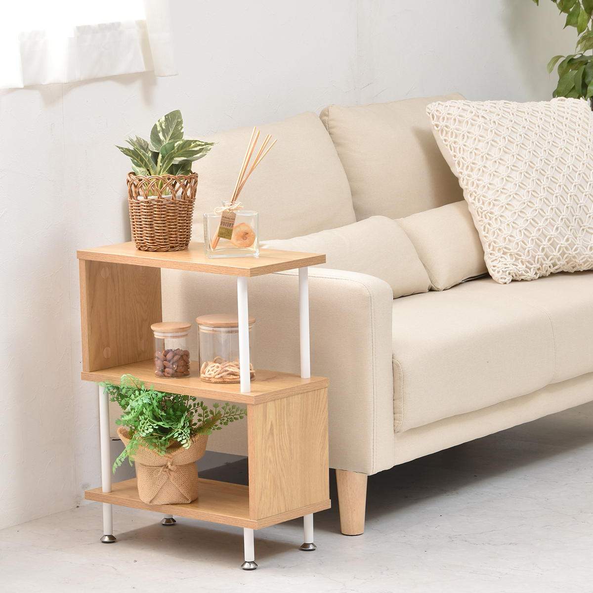 WU サイドテーブル ONST0204 S字サイドテーブル S字ラック 5の字サイドテーブル ジグザグ 幅40cm 奥行き20cm 3段 コンパクト 木目調 ソファー
