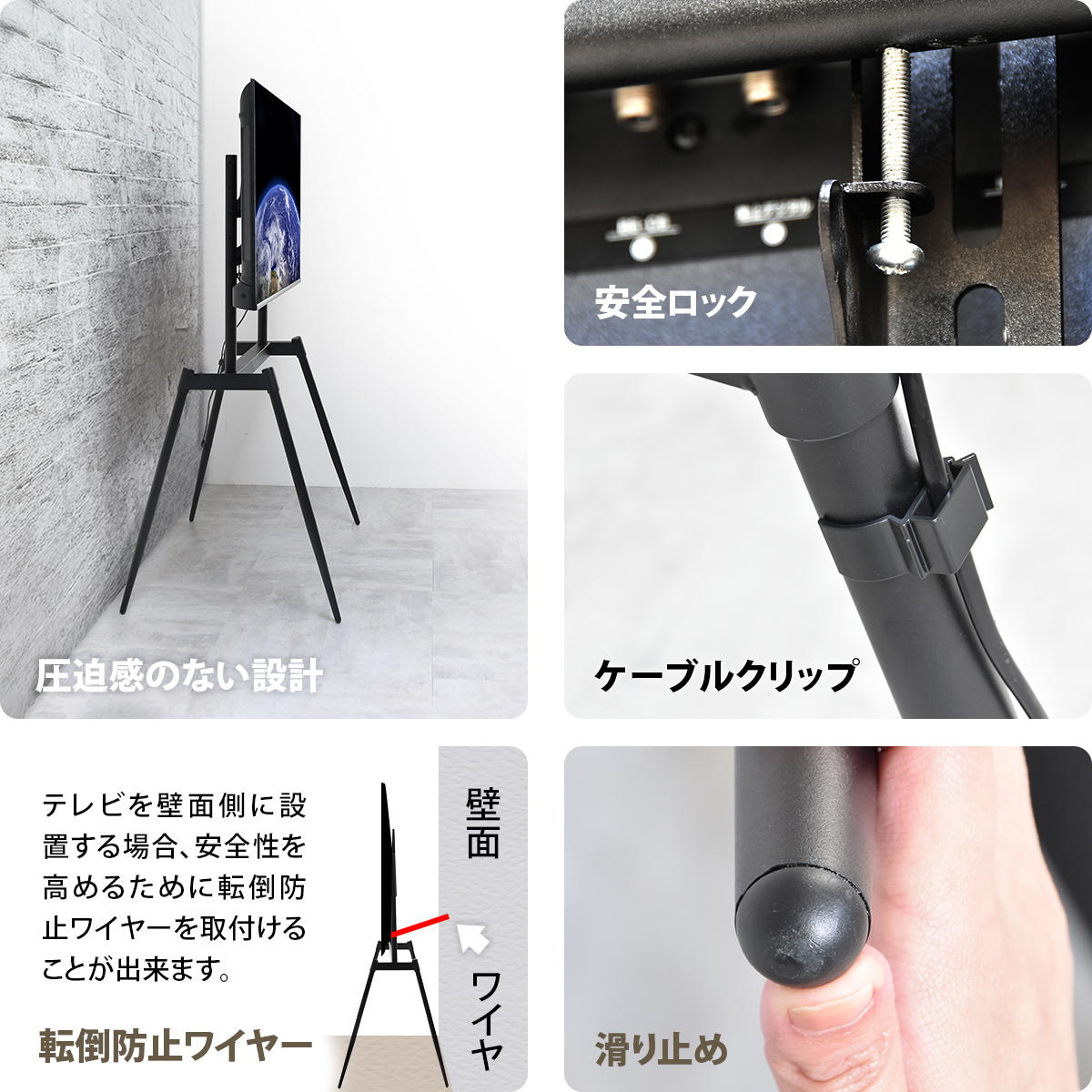 テレビスタンド 壁寄せ イーゼルタイプ テレビ台 テレビボード TV台 TVスタンド TVラック 高さ調節可能 テレビボード シンプル モダン