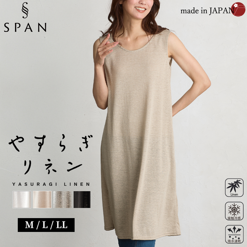 | 商品詳細 | ペチワンピースとしてさらっと着られるリネン素材のノースリーブワンピース。ワンピースの下に、浴衣の下に、部屋着としても◎ |