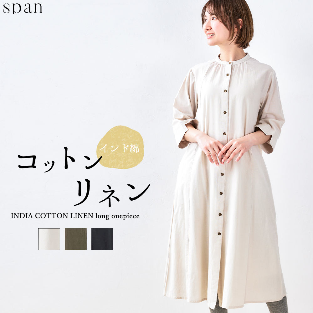 レディース ワンピース ロングワンピース 羽織り チュニック シャツ ブラウス 7分袖 半袖 ロング丈 マキシ丈 ポケットあり バンドカラー ギャザー Aライン 前開き 釦 ベージュ モカ ブラック 春 夏 体型カバー ゆったり インド綿 エスニック 綿 麻 コットン リネン 天然素材 ナチュラル カジュアル きれいめ おしゃれ 婦人服 女性 服 プチプラ 安い ミセス ミセスファッション 40代 50代 レディースファッション ファッション 人気 通販 2023 新作 SPAN スパン