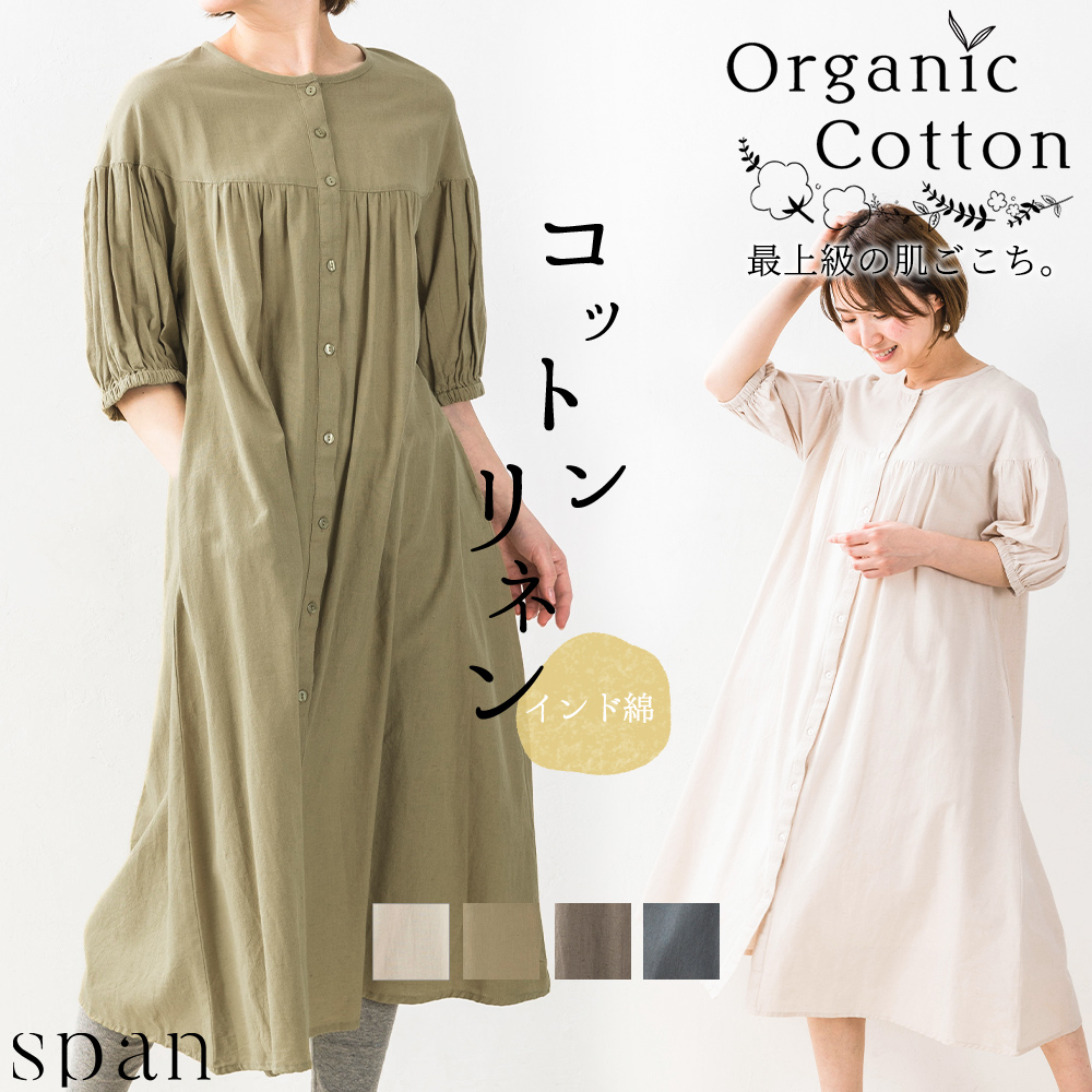 オーガニックコットン 麻 インド綿 ワンピース レディース 40代 50代 きれいめ 春 夏 秋 マキシ丈 コットン リネン ロングブラウス 綿