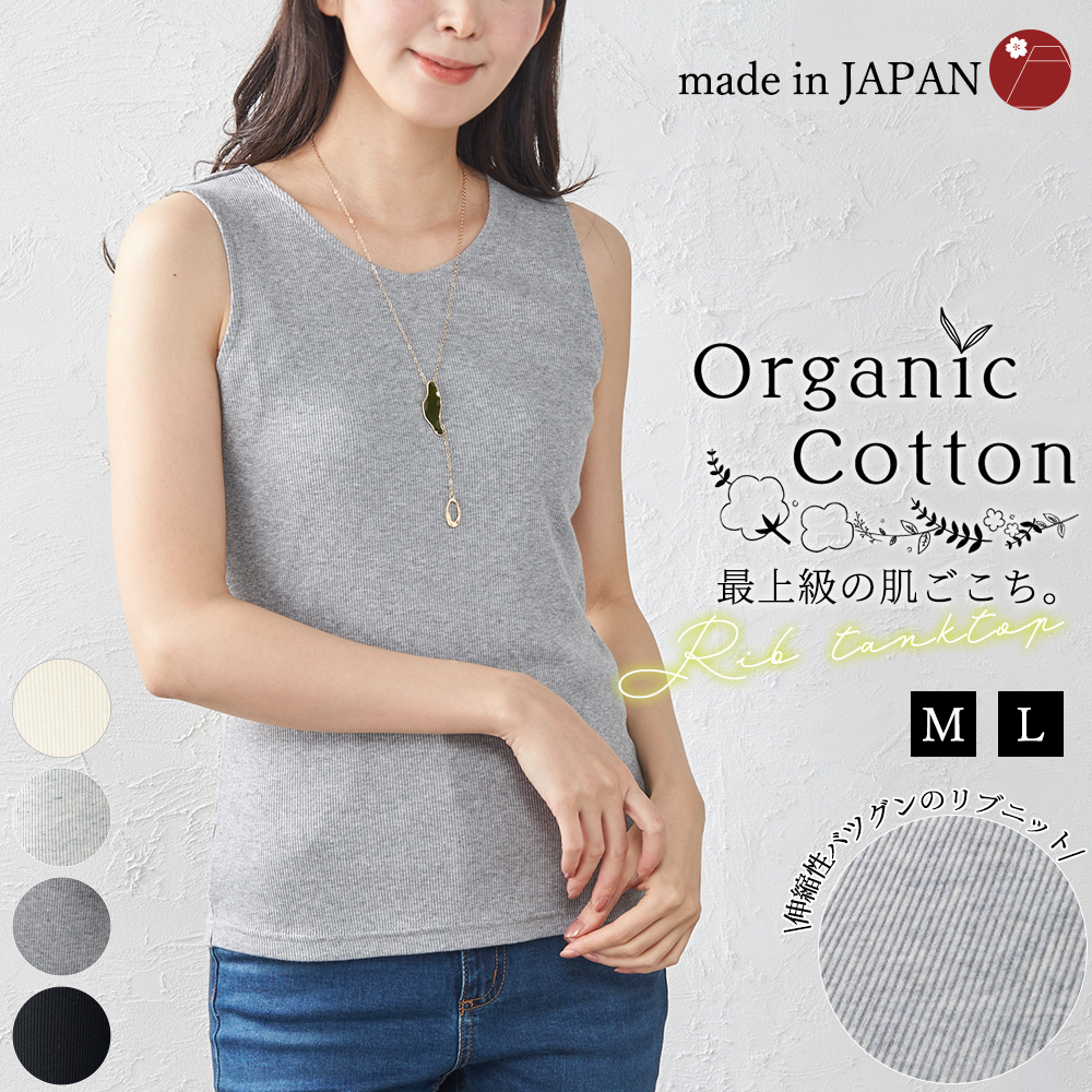 年中使える肌に優しい日本製オーガニックコットンタンクトップ