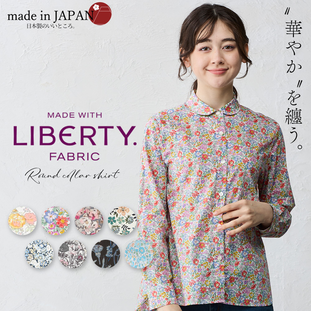 リバティ シャツ襟 日本製 プリント 綿100% ラウンドカラー コットン 綿 シャツ ブラウス 羽織 長袖 レディース トップス リバティ生地