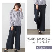 綿100% ダブルガーゼ ワイドパンツルック パンツ ロング レディース ボトムス コットン 綿 黒 ブラック 体型カバー 大きい ご試着対象