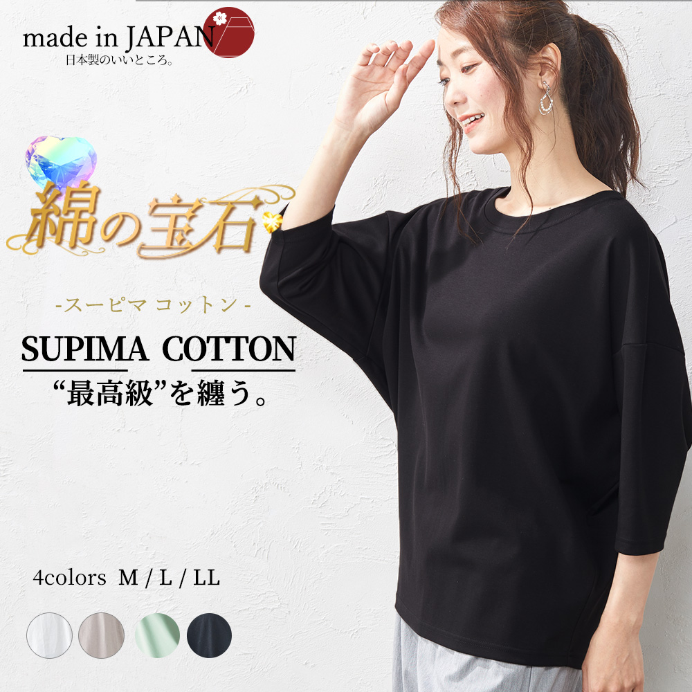 スーピマコットン 日本製 抜群の肌触り Tシャツ トップス ドルマンtシャツ 七分袖 カットソー レディース 綿 コットン 綿100%