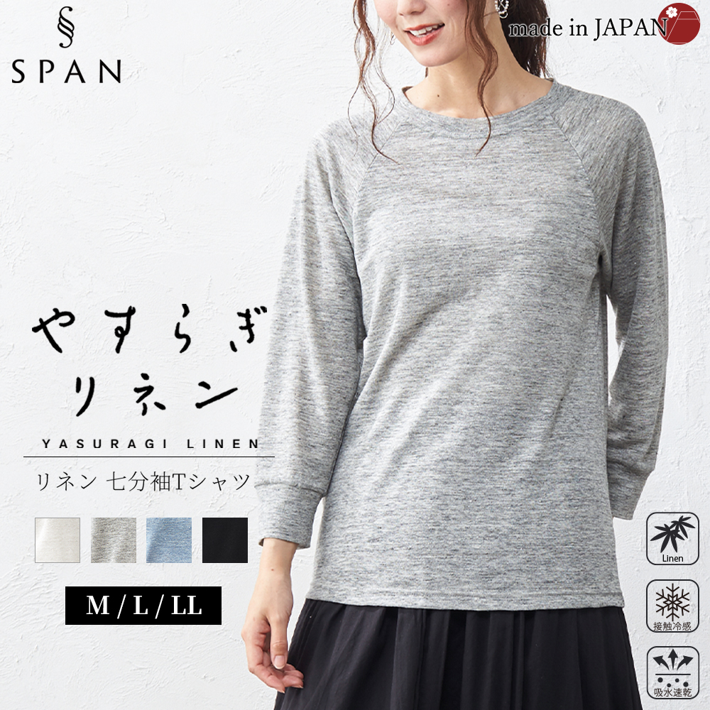 日本製 麻 リネン ラグランTシャツ Tシャツ レディース トップス カットソー 大きいサイズ インナー クルーネック 七分袖 長袖