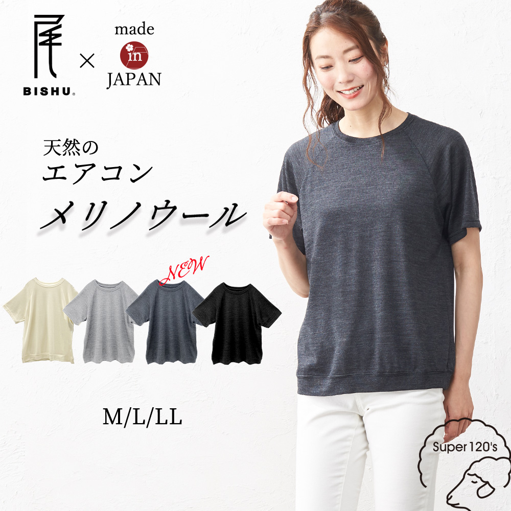 メリノウール 日本製 尾州織り tシャツ インナー トップス カットソー 半袖 レディース 登山 ゆったり クルーネック 春 夏 秋 冬