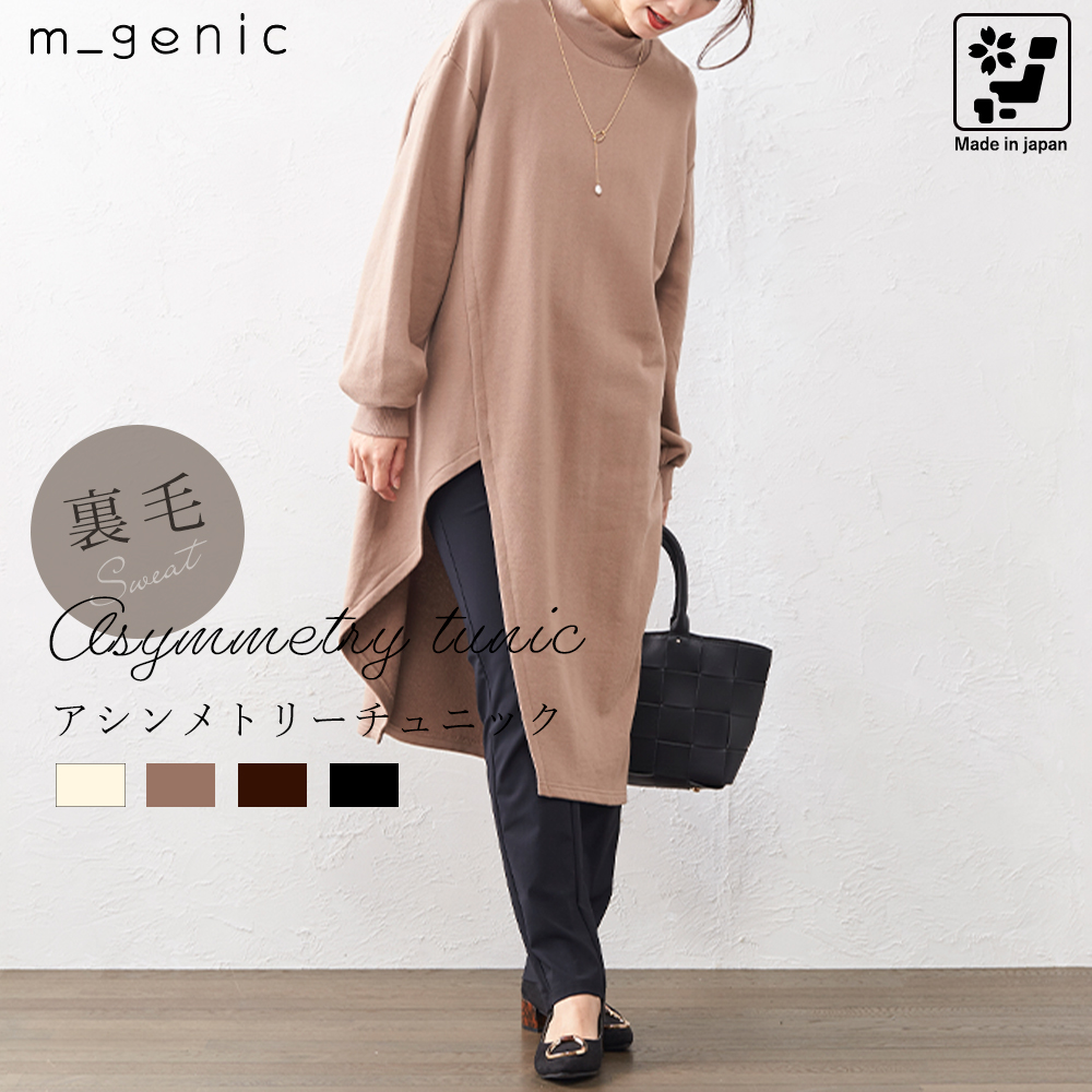 送料無料 レディース 裏毛 ミニ裏毛 アシンメトリー チュニック