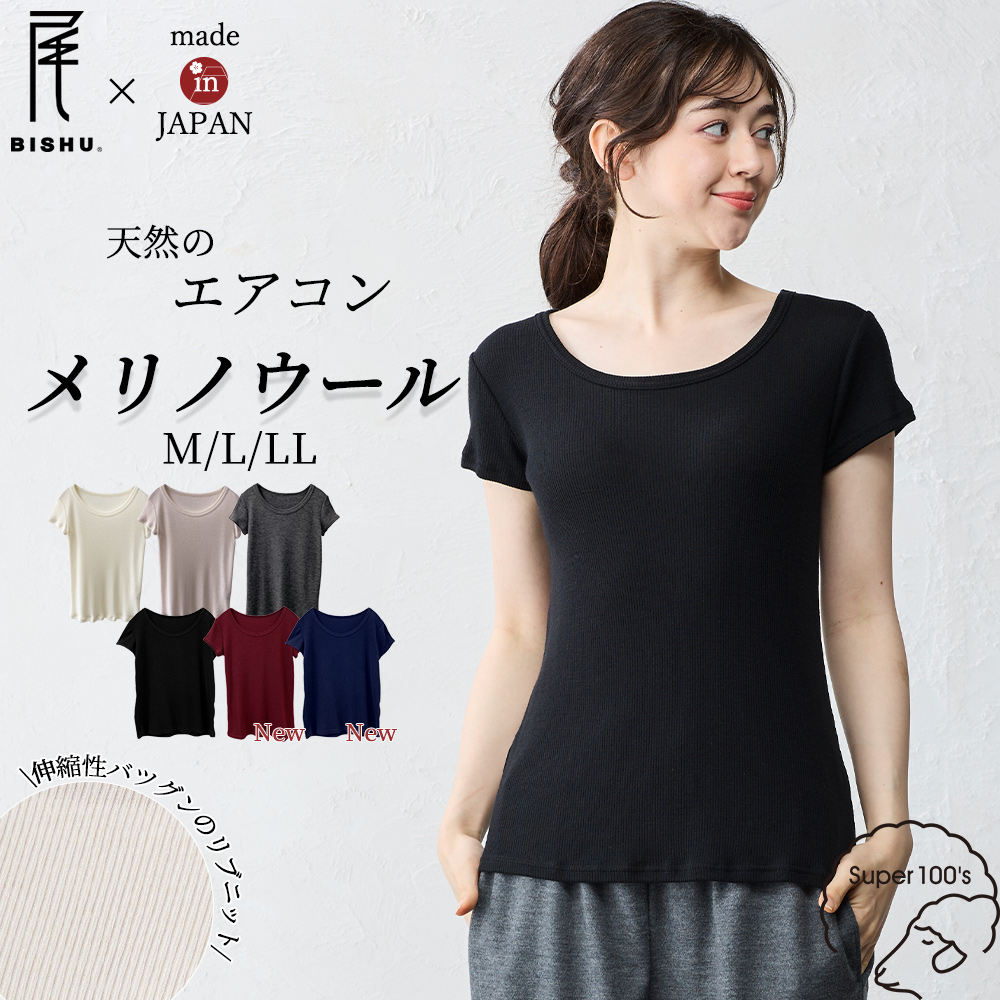 メリノウール 日本製 リブ クルーネック tシャツ インナー レディース 半袖 登山 インナー ベースレイヤー カットソー