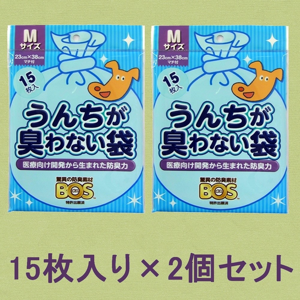 【15枚入り×2袋セット】驚異の防臭素材BOS(ボス)うんちが臭わない袋 Mサイズ 小分け袋15枚入 ペット用うんち処理袋/マナー袋 犬・猫