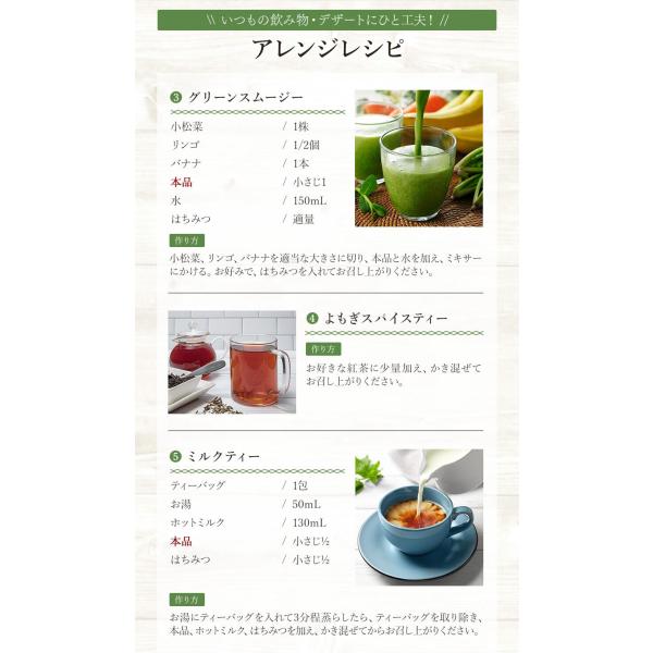 原材料名: シナモン ( ベトナム 産 )、 よもぎ 、 ココア 、 ジンジャー 、