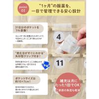 ● 薬+日用品も一緒に収納できる設計 カレンダー上部には4つの大型収納ポケットを配置。 診察券やお薬手帳、体温計、スケジュール表、写真などもまとめて入れられます。