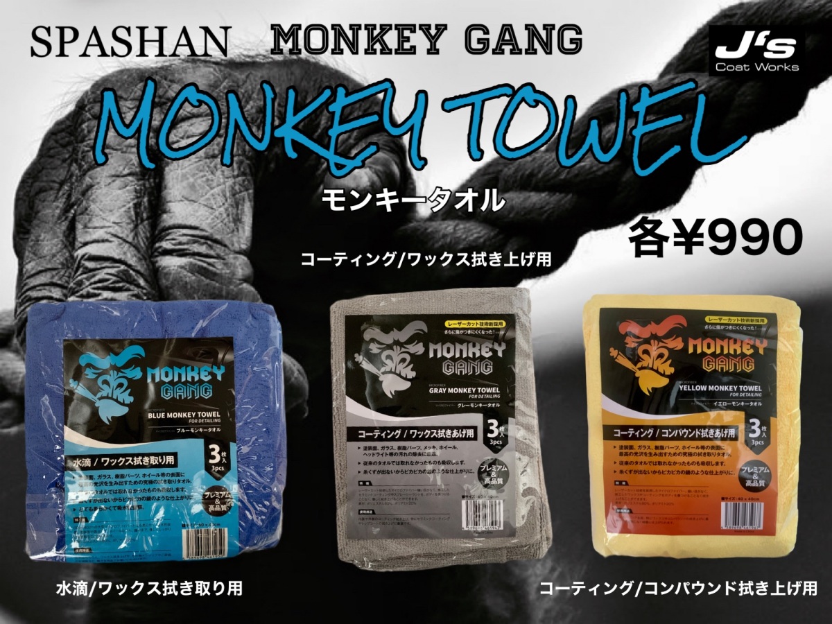 スパシャン ジェイズ モンキーギャング モンキータオル 3枚入り 拭き上げ 拭き取り SPASHAN MONKEYGANG