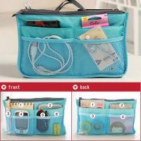 女性のバッグの中身は何かと物が多く、小物の収納に困ってる方にお勧めのバッグインバッグ♪持ち手が付いているのでバックから取り出しやすい、持運び楽々、旅行のときに大活躍〜小物などなくならないようにしっかりとファスナー付き!フロントにメッシュポケットで何が入っているのかすぐにわかるのも嬉しいね!ボタンが付いているので必要に応じて小さくすることが可能♪いろいろなサイズのポケット付きで収納上手!保護素材で中身をガード!これ一つあればコスメからスマホ、手帳まですっきり収まっちゃう♪買うなら今がチャンス