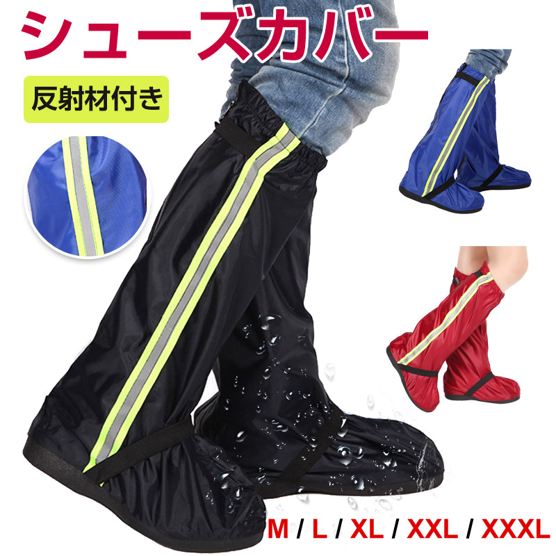 シューズカバー ロング丈 靴カバー 反射材付き レインシューズカバー 男女兼用 レイン 防水 雨 レインブーツカバー 翌日配達送料無料 秋冬