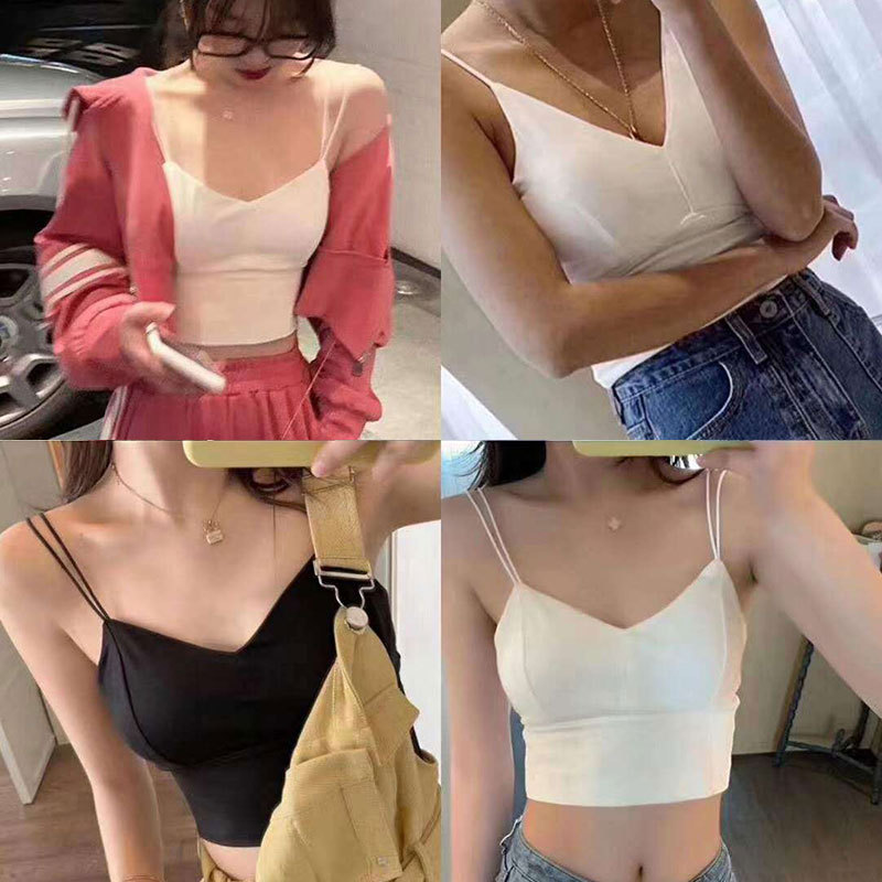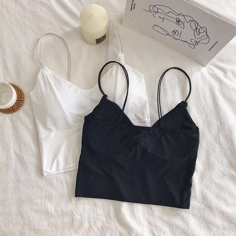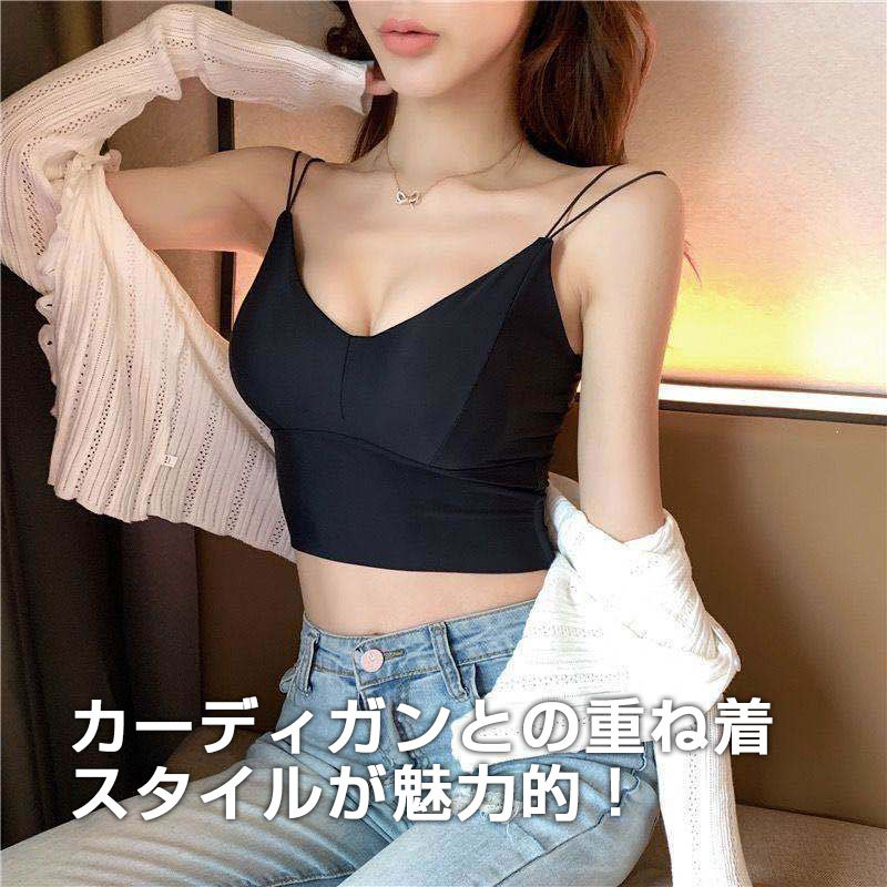 細ダブルストラップ ノンワイヤー ブラトップ パッド付き レディース キャミソール インナー ブラトップ フェミニン 春夏秋冬 レディース フリーサイズ ホワイト ブラック2colors ヨガブラ スポブラ 見せブラ ナイトブラ 背中見せ スポーツブラ ブラジャー 無地 ブラトップ ヨガウェア キャミソール