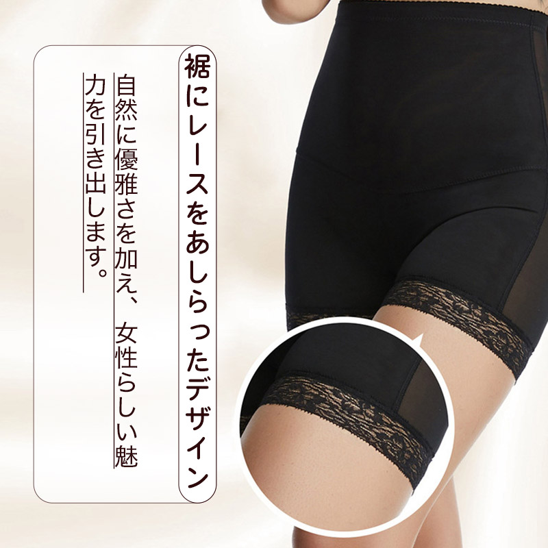 ハイウエスト設計で、お腹周りをしっかり引き締め、スムーズなシルエットを実現します。
