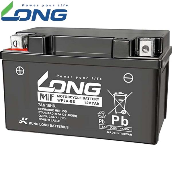 キャッチフレーズ :ロングバッテリーは台湾株式に上場する鉛電池業界では最大手のメーカーで、現在ベトナムホンダではアイドリングストップ機種に純正バッテリーとして採用されております。【適合情報】ヤマハ[YAMAHA]…AXIS TREET [アクシストリート]SE53Jスズキ[SUZUKI]…BANDIT250/N/V/VZ [バンディット250]スズキ[SUZUKI]…ADDRESS V125/G [アドレスV125/G]スズキ[SUZUKI]…ADDRESS V125S [アドレスV125S]スズキ[SUZUKI]…AVENIS125 [アヴェニス125]スズキ[SUZUKI]…VECSTAR125 [ヴェクスター125]ユニバーサル[汎用]【詳細情報/補足情報】メーカー品番[カタログ品番]:WP7A-BS重量[キログラム]:約3.15kgタイプ:液入り充電済電圧[ボルト]:12V備考:【YTX7A-BS、GTX7A-BS、FTX7A-BS 互換】特記事項:液入り充電済バッテリーの商品特性上、ご使用の際には必ず補充電を行ってからご使用下さい。バッテリーを満充電しないで使用すると、本来の性能が完全に発揮できないことになります。使用上の注意:・火気を近づけないでください。バッテリーから水素ガスが発生するので、引火爆発の原因となります。・金属工具などで(+)端子と(-)端子を接触(ショート)させないでください。スパークにより引火爆発や火災の原因となります。・二輪自動車のエンジン始動以外に使用しないでください。液漏れや焼損、引火爆発の原因となります。・取扱い方法や危険性を充分に理解していない者(子供など)に触れさせないでください。電解液(希硫酸)により失明や火傷の原因となります。・充電器の使用は正しく行ってください。取扱いを誤ると引火爆発や火災、車両機器の損傷の原因となります。充電器の取扱説明書に従い正しく充電してください。・電解液(希硫酸)の取扱いにご注意ください。体に付着すると失明や、火傷などの原因となります。衣服や機器に付くと損傷する恐れがあります。・取扱い時は保護メガネを着用してください。電解液(希硫酸)により失明や火傷の原因となります。・取扱い時はゴム手袋などの保護手袋を着用してください。電解液(希硫酸)により失明や火傷の原因となります。・充電器は、電源がON(入)の状態でバッテリーに接続しないでください。スパークにより引火爆発や火災の原因となります。・ゴミや埃など排気口が詰まった状態で注液、充電、車両への取付を行わないでください。・充電は風通しの良い所で行い、火気を近づけないでください。引火爆発や火災の原因となります。