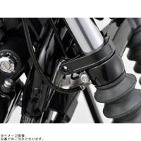 クロームメッキ仕上げとブラック塗装(電着塗装)仕上げをラインアップ。取付穴はφ10.2mm。ウインカーやホーン、メーターなどさまざまな物の取り付けに対応。ヒンジ形状によりクランプを分解せずに取付可能。