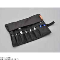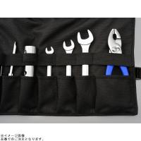 ひとめで必要な工具を見つけることができるナイロン製ロール式ツールバッグ。工具の落下を防止するカバーとゴムバンド付き。カバーは大型なので、短い工具でもケースから脱落しにくく、サイズの違う収納ポケットは工具の整理収納が可能です。丸めた状態に合わせ、バンドの長さを調節できます。